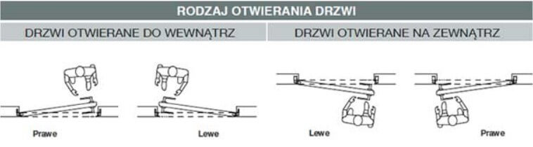 W celu prawidłowego określenia kierunku otwierania drzwi wewnętrznych należy po pierwsze stanąć w pomieszczeniu, na które drzwi się otwierają. Po drugie zobaczyć po której stronie mamy zawiasy, a po której klamkę. Jeśli zawiasy są po lewej stronie to będą to drzwi lewe, jeśli po prawej stronie to będą to drzwi prawe.